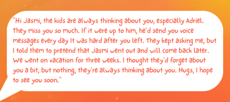 Prve noći bilo je teško. Nemogućnost razgovora činila je da se oseća daleko od svog pravog ja. Ali kako su dani prolazili, počela je da stvara veze koje ne zavise od jezika. Upoznala je volontere iz celog sveta, stekla prijateljstva koja traju i danas, i ono najvažnije – počela je da se povezuje sa porodicom i decom u kampu u kojem je radila.